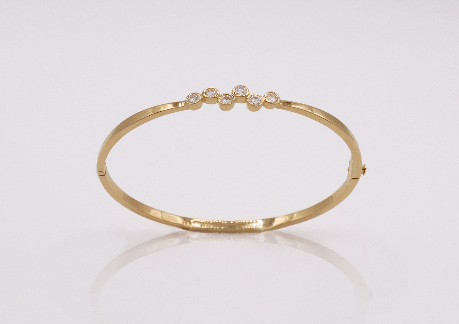 This 18k gold bangle features six delicate diamonds, each dot a whisper of light.